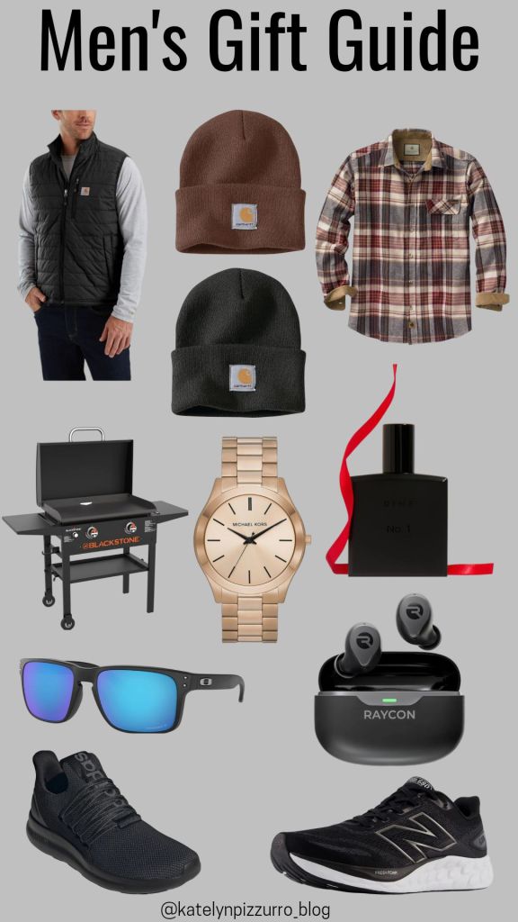 Carhart Vest, Black Carhart Hat, Carhart Hat (Mocha), Flannel, Blackstone Griddle, Michael Kors Watch, Dime No. 1 Cologne, Oakley Sunglasses, Raycon Earbuds, Black Adidas Sneakers , New Balance Sneakers